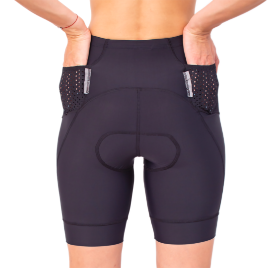 Short femenino ultraliviano con ajuste ergonómico y secado rápido, cuenta con un bolsillo trasero que cabe hasta un celular. Ideal para running y entrenamiento