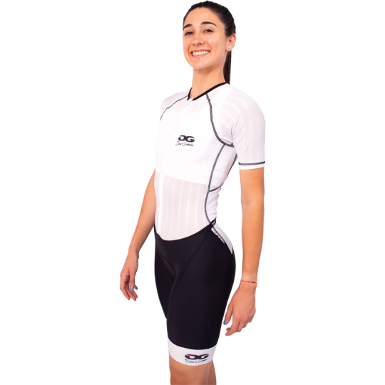 Desarrollado para competir al más alto nivel, el trisuit OG DESIGN está confeccionado con tejidos tecnológicos importados que ofrecen una óptima relación entre compresión, transpirabilidad y aerodinámica.